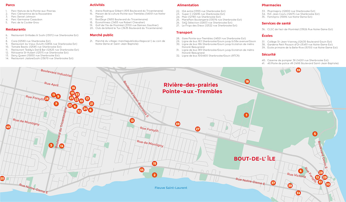 Les grandes artères à proximité, comme la rue Sherbrooke, la rue Notre-Dame et le boulevard Gouin, simplifient les déplacements dans la métropole. L’accès facile aux autoroutes 40, 25 et 640 permet de sortir aisément de la ville et de se rendre au centre-ville en moins de 30 minutes. Grâce au trajet direct et rapide entre la gare Pointe-aux-Trembles et la gare Centrale de Montréal, passer de la tranquillité de la Pointe-de-l’Île à la frénésie du centre-ville se fait en un rien de temps!